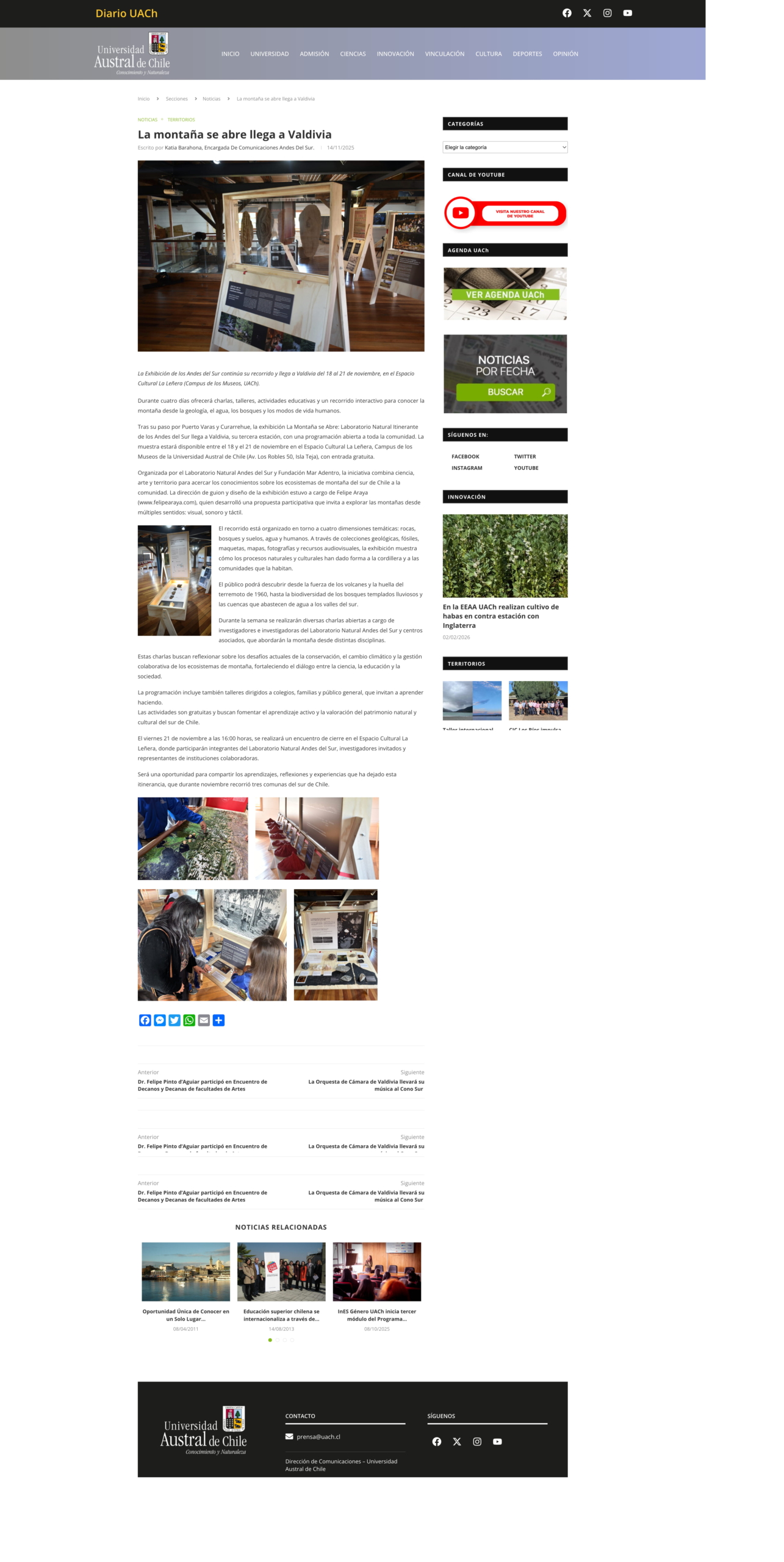 Descubre la Cordillera: Exhibición “La Montaña se abre” Llega al sur de Chile – Frutillar Hoy